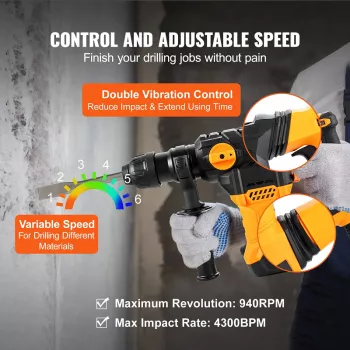 1500W Rotary Hammer Drill SDS-Plus Corded Demolition Tool with 4 Modes for Concrete