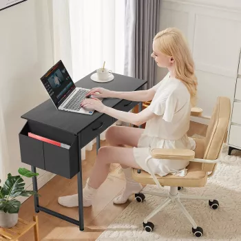 32 Inch Modern Office Desk with Fabric Storage Drawers and Metal Frame