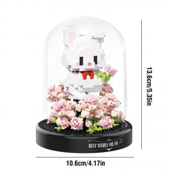 Animal Building Block Set with Dust Cover - Dog, Rabbit, Rose Collection