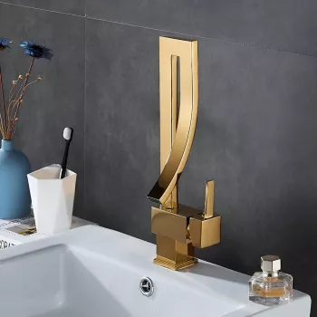 Deck Mounted Brass Waterfall Basin Faucet with Single Handle