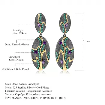 Handmade Amethyst Drop Earrings in 925 Sterling Silver - Vintage Geometric Style