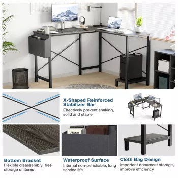 L-Shaped 50-Inch Gaming Desk with CPU Storage & Side Bag for Home Office