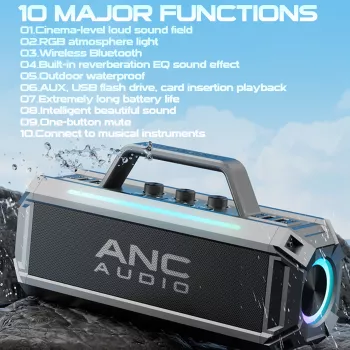 Portable 100W 7-Speaker Subwoofer with Dual Wireless Microphones - Waterproof, RGB, 12 Hours Playtime