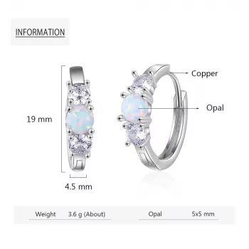 Round Hoop Earrings with Created White Opal for Women, Statement Wedding Jewelry