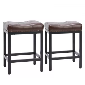 Saddle-Style PU Leather Adjustable Bar Stools with Metal Base