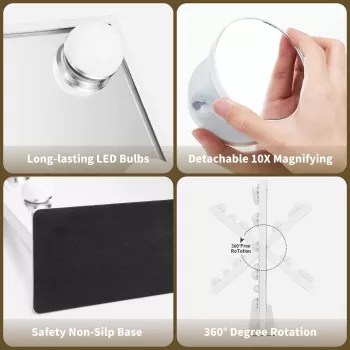 Vanity Makeup Mirror with Lights – 3-Color LED, 10X Magnification, Touch Control